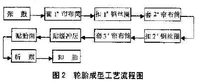 以成型11.00-20斜交胎為例的主要成型工藝流程如圖2所示。