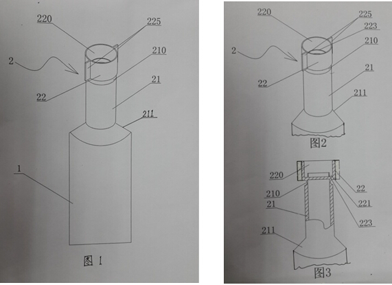 灌裝從軟體管身孔口進(jìn)行、灌后封合,有很成熟的膏體、粉劑軟管灌裝封口機(jī)可供選用。使用時(shí)可用左手拇指和食指捏住硬體管頭部分21處,右手拇指和食指捏住硬體管頭部分225處,雙手反方向旋轉(zhuǎn),稍用力就可從管頭薄弱處210處扭斷,使管帽22脫離管體,從管頭孔口處按需求量倒出或擠出包裝物。