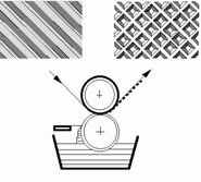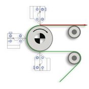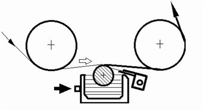 標準凹版(網紋輥)涂布可分為正涂和逆涂,但都必須使用直徑約與網紋輥大致相同的橡膠壓輥。涂布基材從網紋輥和壓輥之間通過。經常遇到起皺和斷開的問題,另外壓輥接觸面還會帶來一些機械的、液壓的和壓力方面問題,影響涂布質量。
