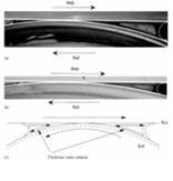 其中:H—涂層濕厚;R—涂珠彎月面半徑;μ—粘度;v—流體速度;(σ)表面張力。Blok 與van Rossum(1953)將薄膜以180°包覆一滾輪且使用油作潤滑劑,膜與滾輪之間的間隙為H=0.43R(6μv/N)2/3。