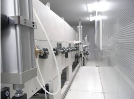 采用UV無極燈固化。在經過干燥區后,涂布膜將會進入固化區,它是通過離子輻射或加熱來固化涂布膜。離子輻射并不受什么限制,只要化合物能夠被紫外線、電子束和r射線激活而發生交聯和固化即可。從操作簡易性和獲得高能量的角度來說,紫外線是最合適的。