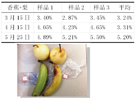 本研究將梨與香蕉共放的重要意義還在于探討香蕉自身產生的乙烯對梨保鮮效果的影響,希望能提供一種保鮮、銷售一體化的新方法。
