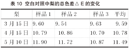 2、梨/香蕉搭檔生物調節膜對色差也有一定影響,空白組梨11.2、香蕉11.49,實驗組梨11.2,香蕉9.35、梨10.67;