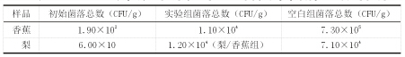 下表是搭配生物調節膜保鮮袋的梨和香蕉在實驗時菌落總數的變化情況。